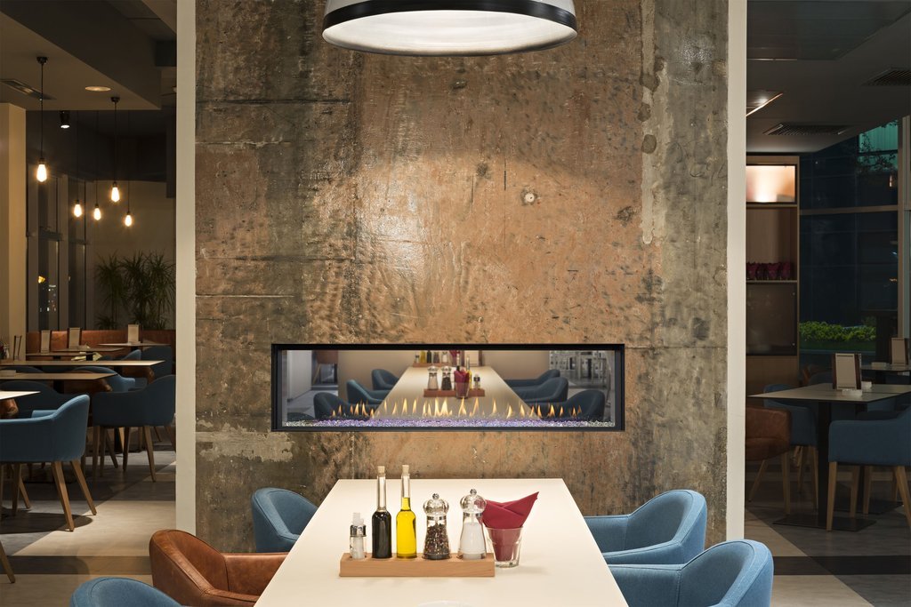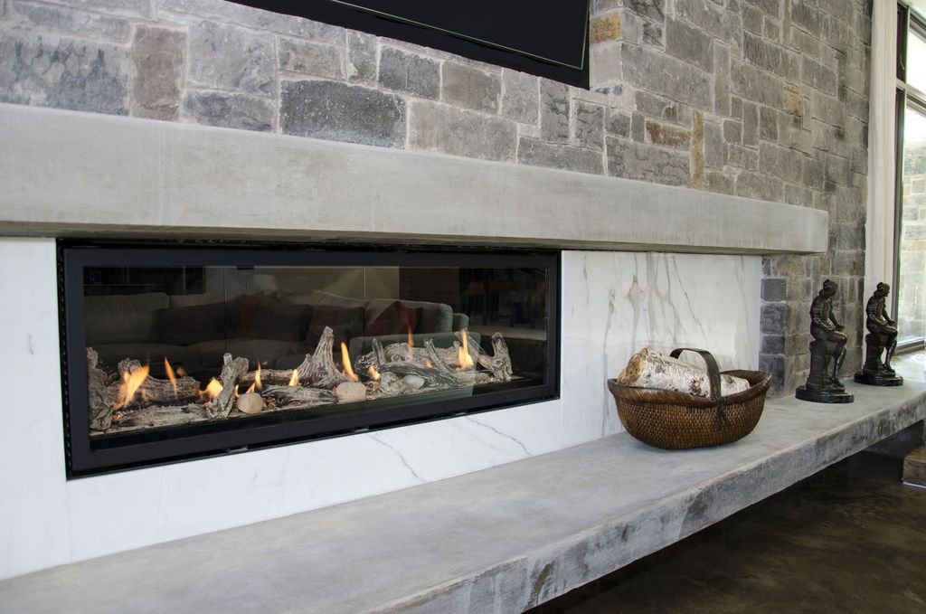Creativity and revolutionary new products combine to highlight one of the year’s hottest trends: fireplace finishes. Montigo Cool Wall technology creates a new world of fireplace design possibilities, allowing for finishes like wallpaper and wood or Caesar Stone quartz and Kedra porcelain, as well as placement of art and media.