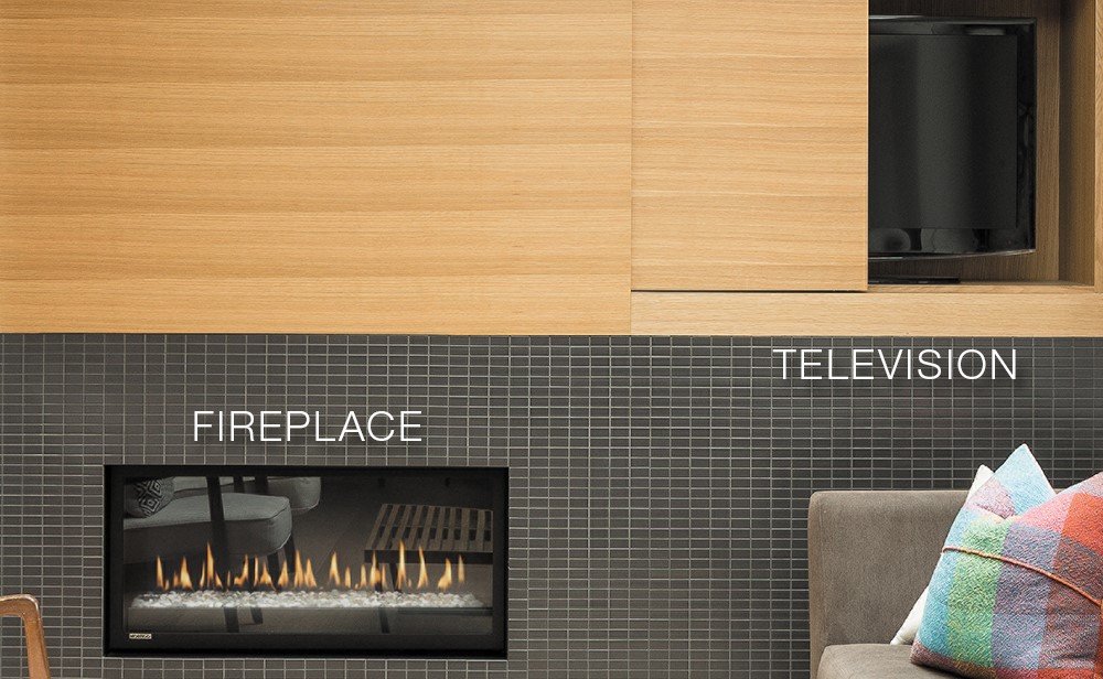 Keep in mind, best practice still recommends keeping any sensitive electronics far away from heat generating fireplaces – in an enclosed area to the side of the unit if possible. But with continually shrinking average condo square footage, we understand that this issue is getting more and more difficult for architects and homeowners to contend with.