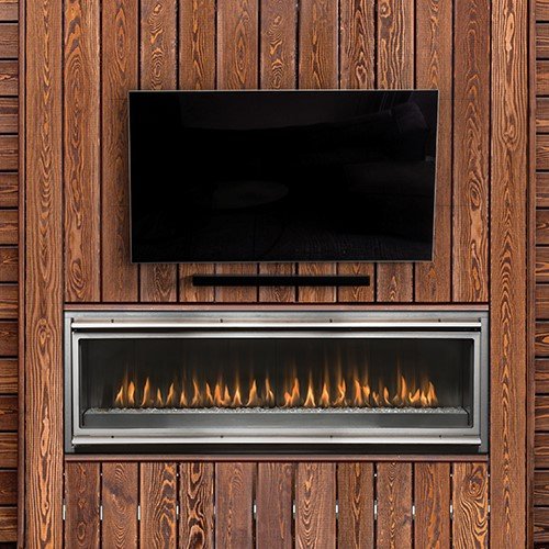 Both the Prodigy and Mahana series fireplaces keep it simple with the built-in ability to install a TV right above the unit with no additional measures being taken.