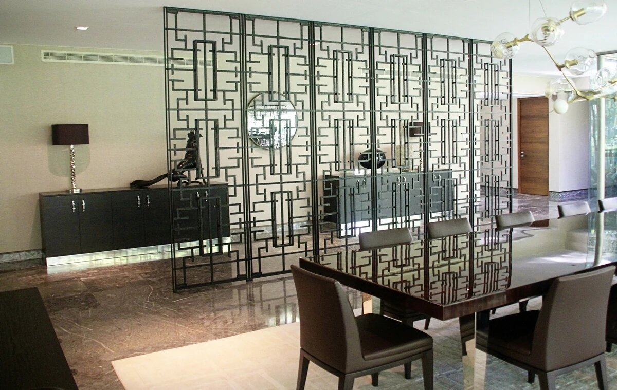 Incorporate an iron partition to create a seating area in a master bedroom or set off a bar in a game room. Use a divider on a patio to create his and hers areas, so groups of friends can be together but separate. Or use a screen to give the illusion of a hallway without the hallway.