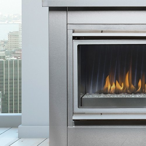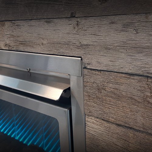 While the full width glass door protects the fireplace flame from winds up to 40mph, the Mahana’s mesh safety screen and cool-to-the-touch enclosure protect your friends and family from potential burns.